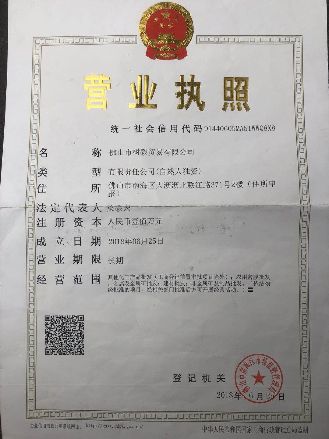 佛山市南海区大沥沥北联江路371号2楼(住所申报)