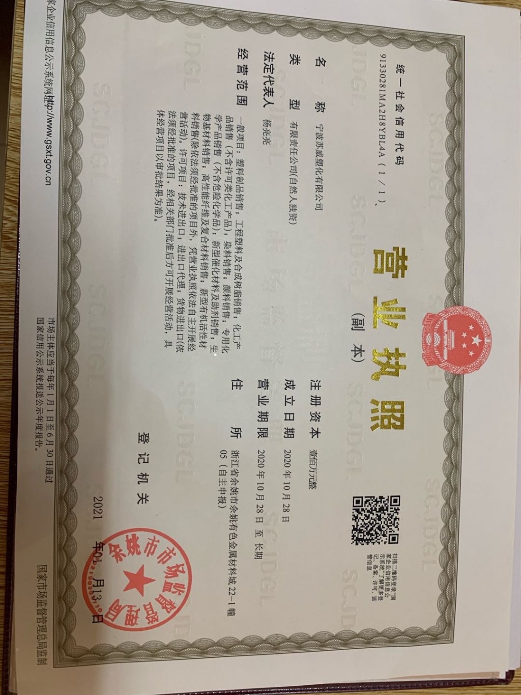 一般项目:塑料制品销售;工程塑料及合成树脂销售;化工产品销售(不含许可类化工产品);染料销售;颜料销售;专用化学产品销售(不含危险化学品);新型催化材料及助剂销售;生物基材料销售;高性能纤维及复合材料销售;新型有机活性材料销售(除依法须经批准的项目外,凭营业执照依法自主开展经营活动)。许可项目:技术进出口;进出口代理;货物进出口(依法须经批准的项目,经相关部门批准后方可开展经营活动,具体经营项目以审批结果为准)。