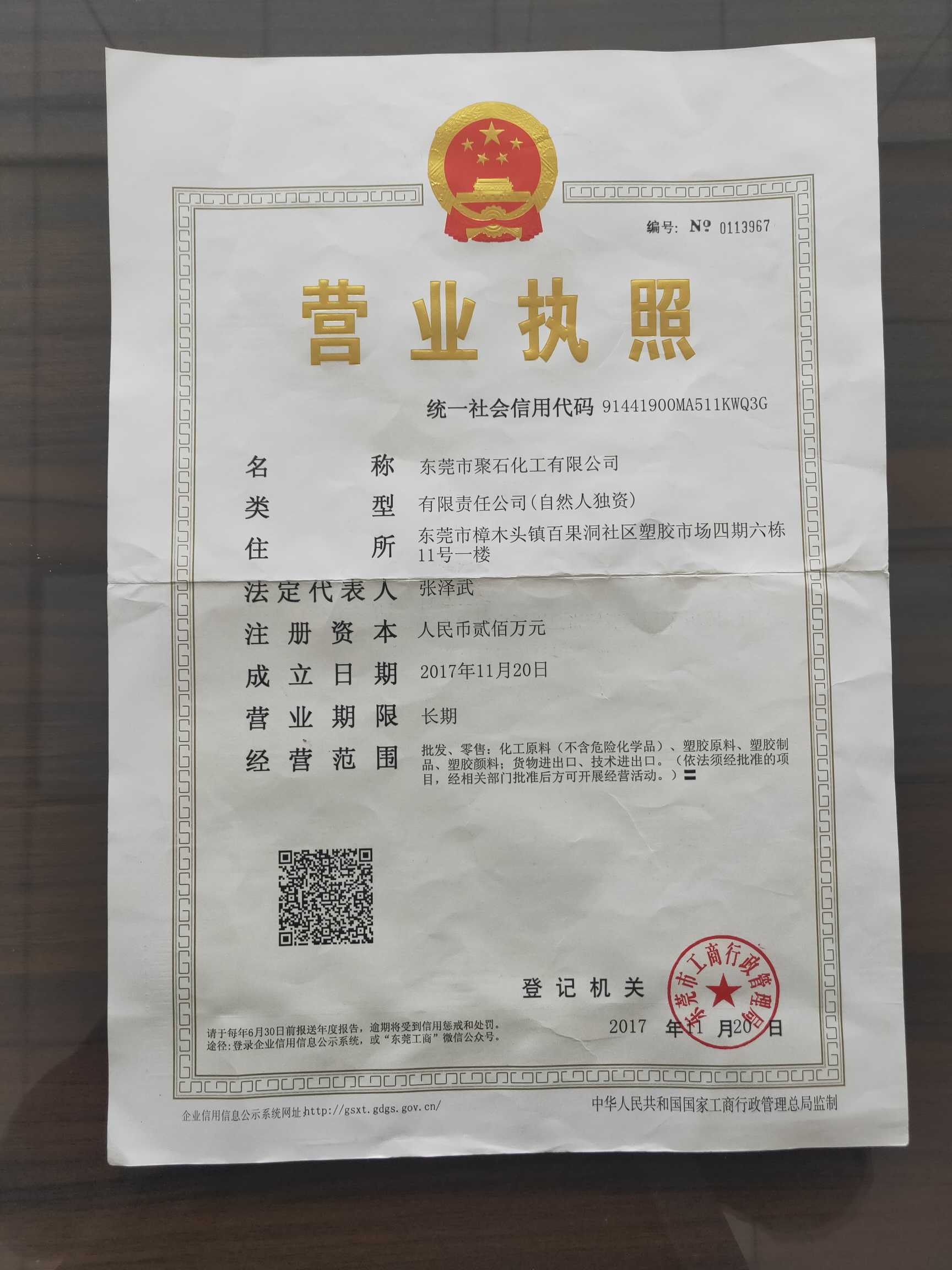 东莞市樟木头镇百果洞社区塑胶市场四期六栋11号一楼