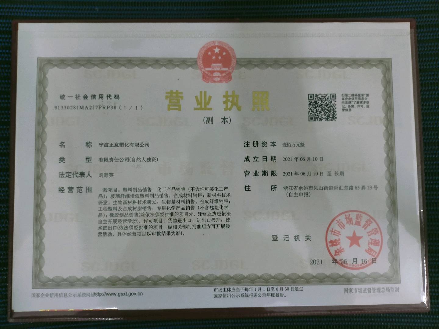 公司名称宁波正意塑化有限公司注册号91330281MA2J7FRP38