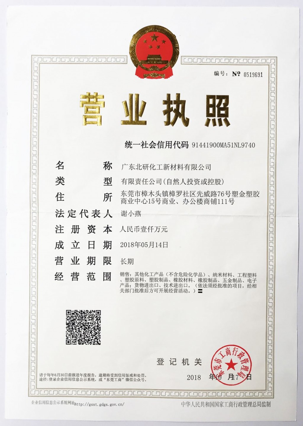 广东北研化工新材料有限公司