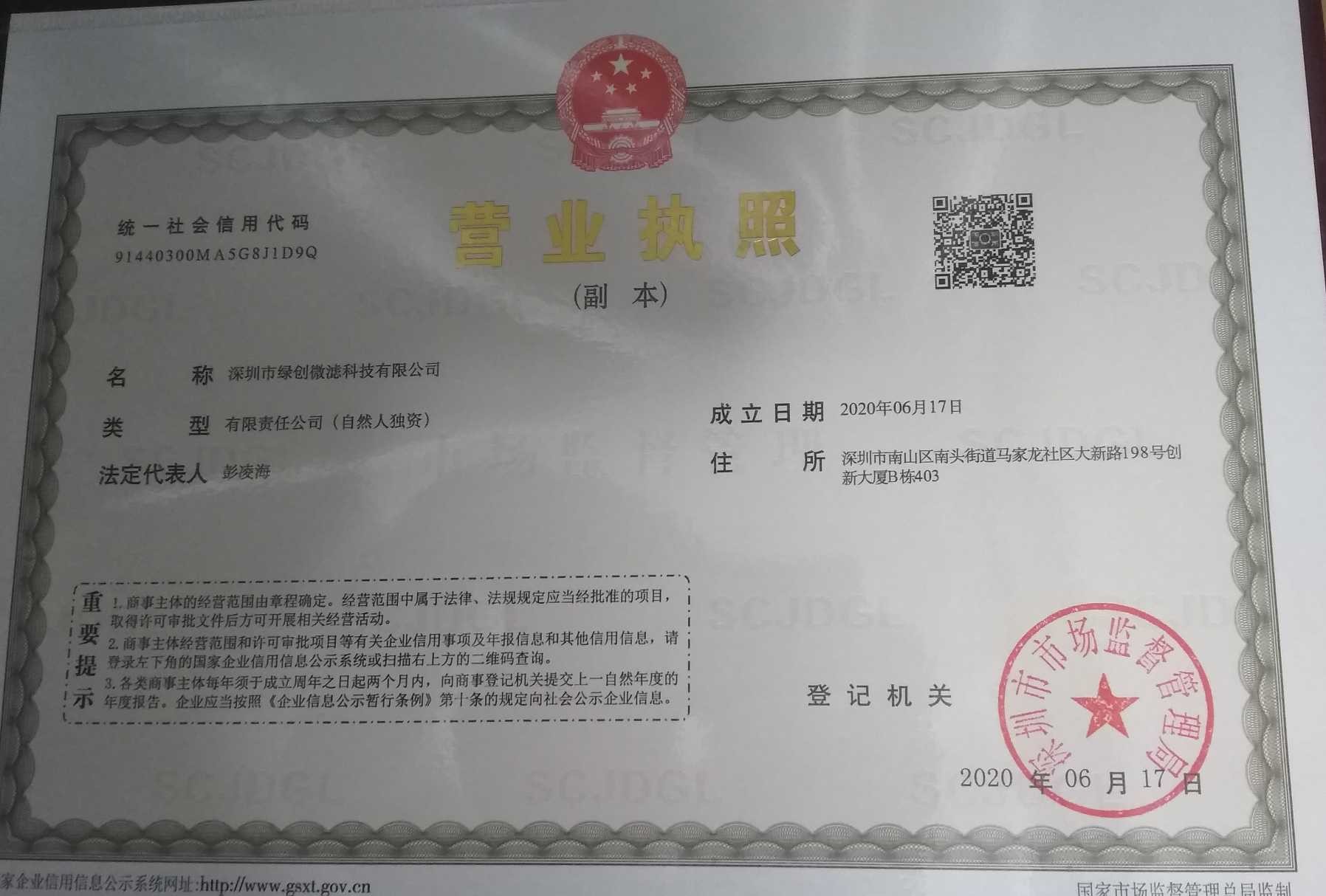 深圳市绿创微滤科技有限公司