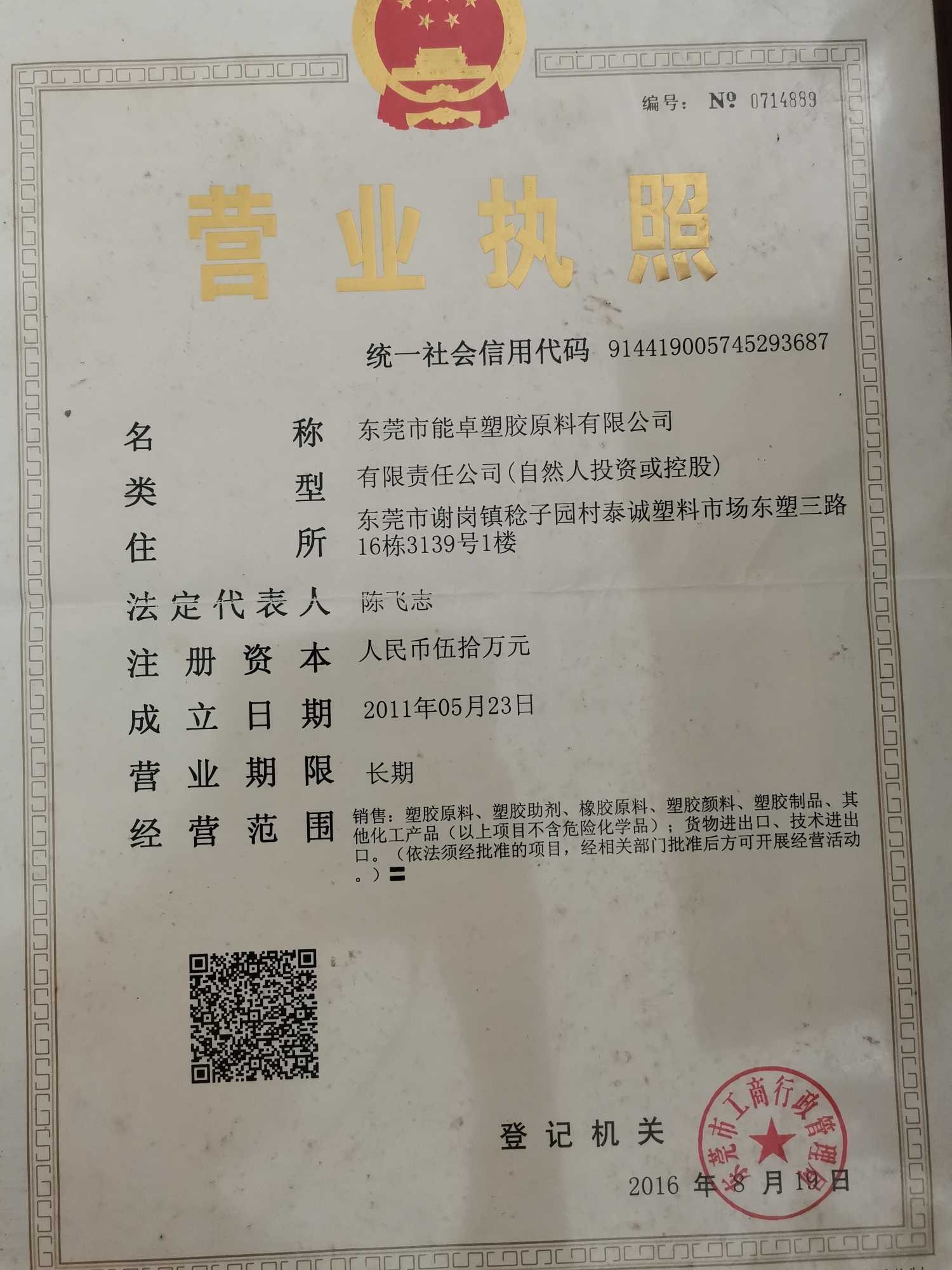 公司名称东莞市能卓塑胶原料有限公司注册号914419005745293687