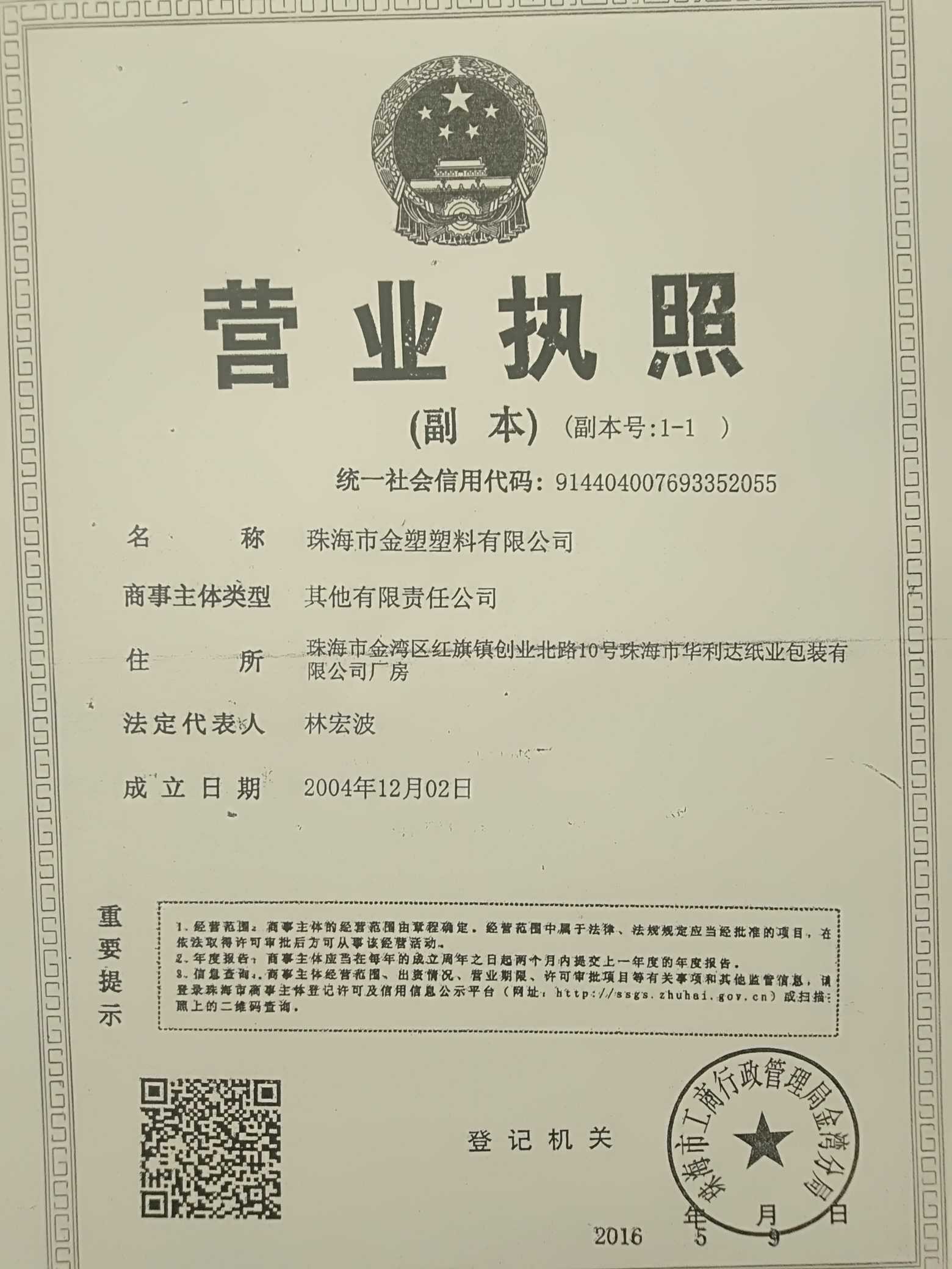 珠海市金塑塑料有限公司