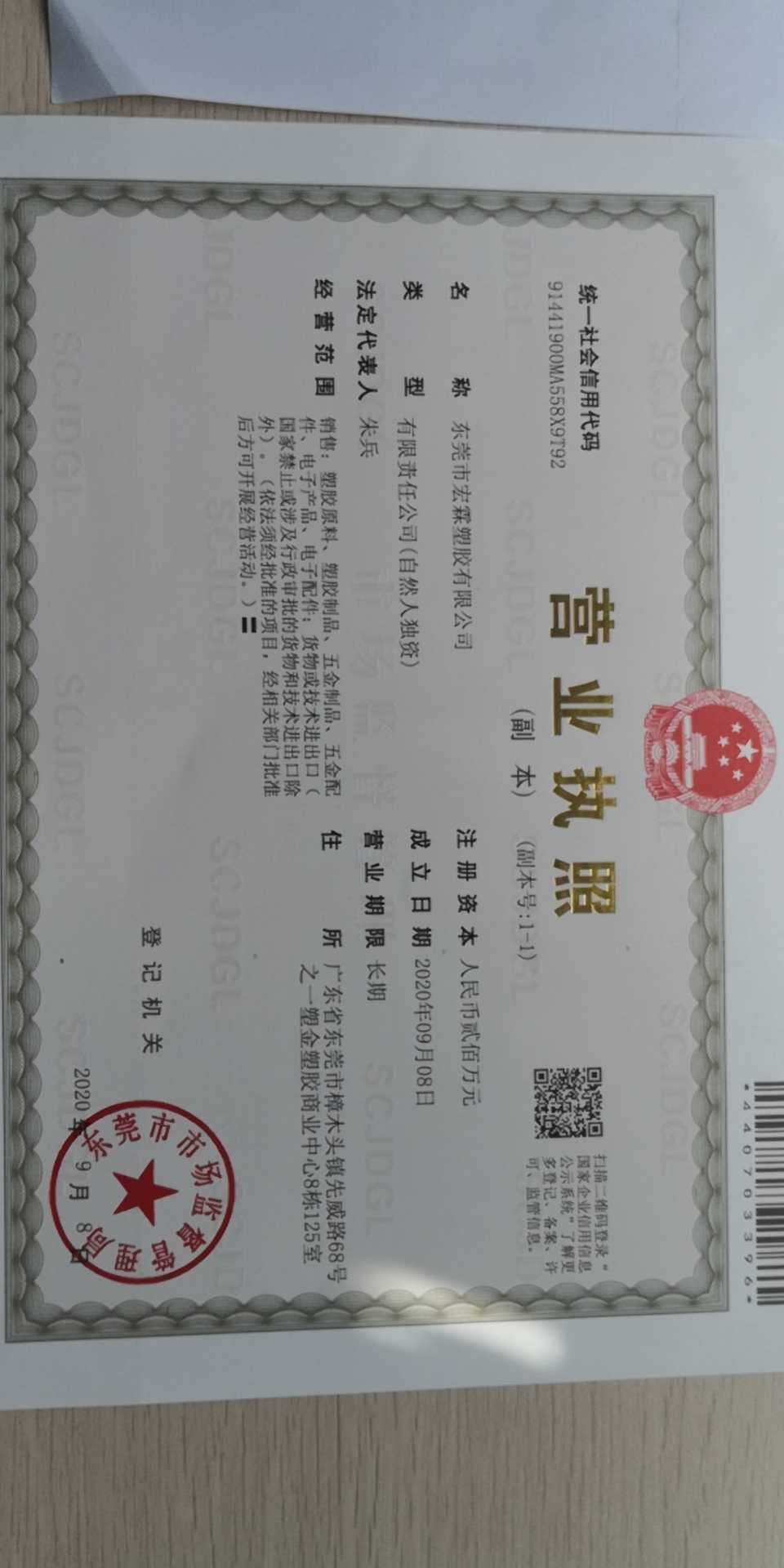 广东省东莞市樟木头镇先威路68号之一塑金塑胶商业中心8栋125室