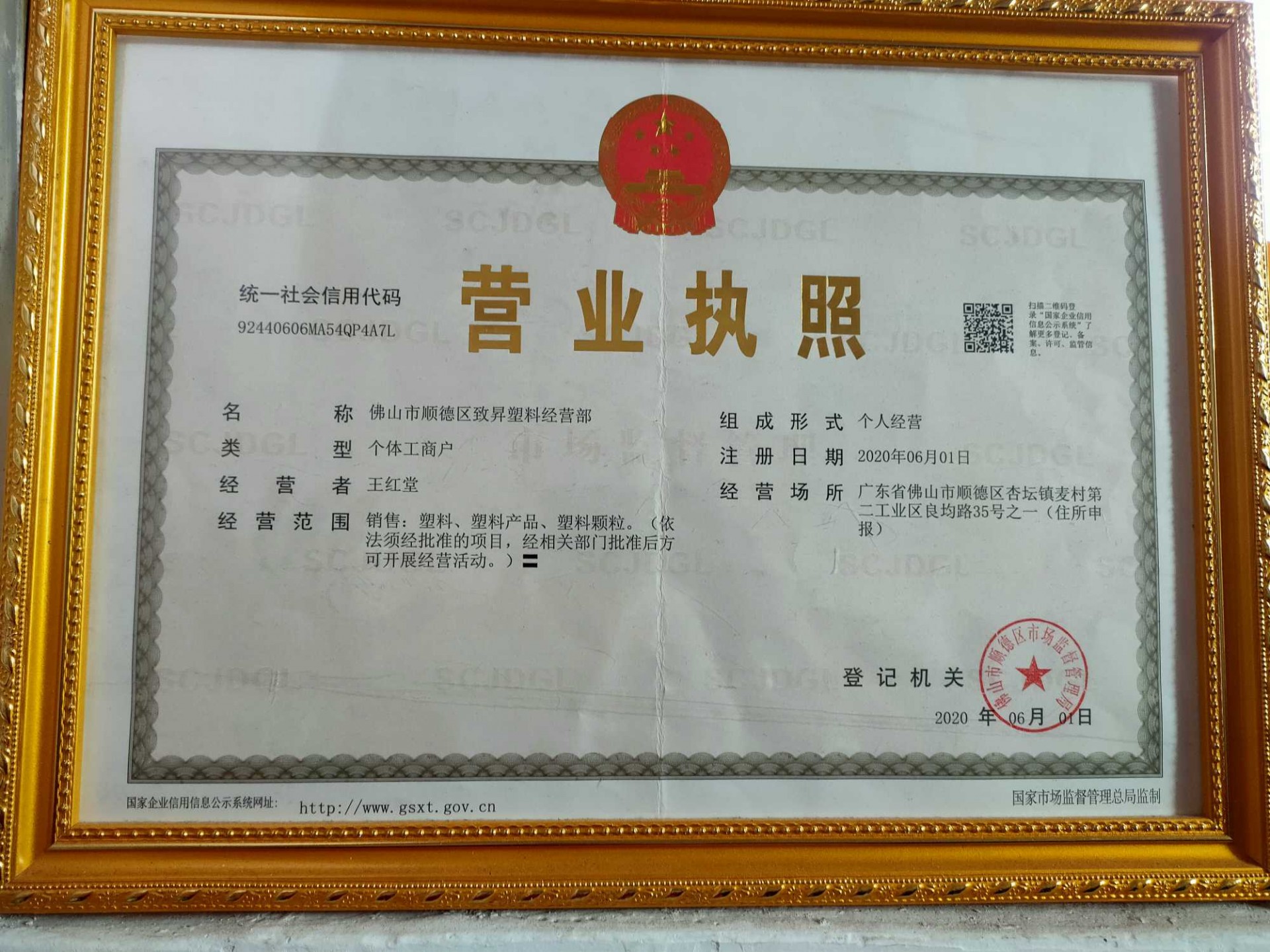 广东省佛山市顺德区杏坛镇麦村第二工业区良均路35号之一(住所申报)