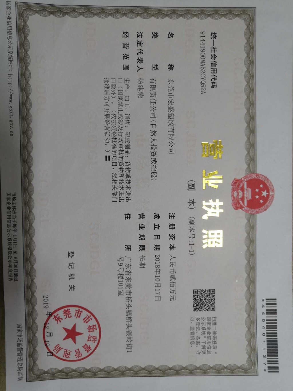 广东省东莞市桥头镇桥头银岭街1号9号楼101室