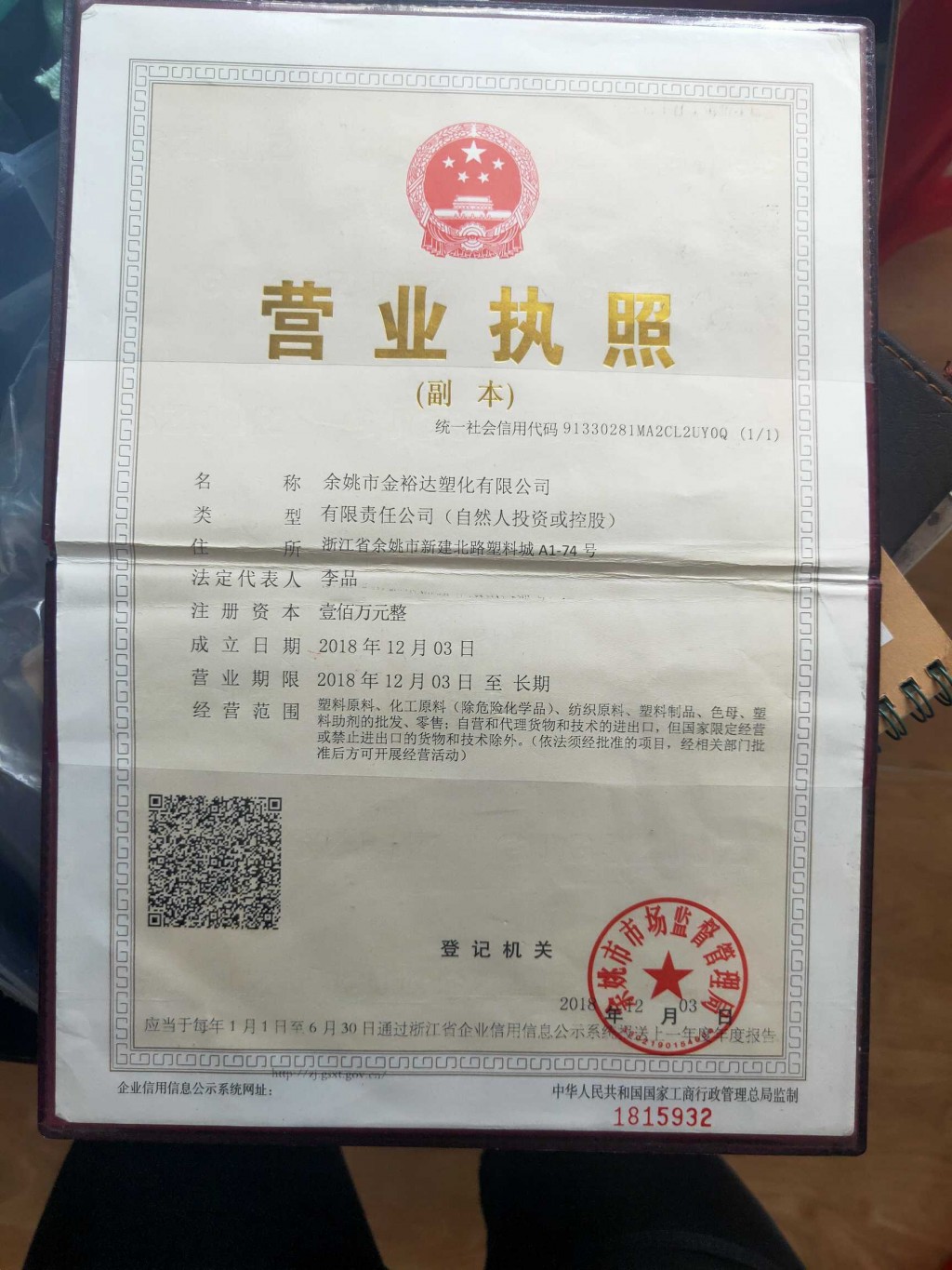 浙江省余姚市新建北路塑料城A1-74号