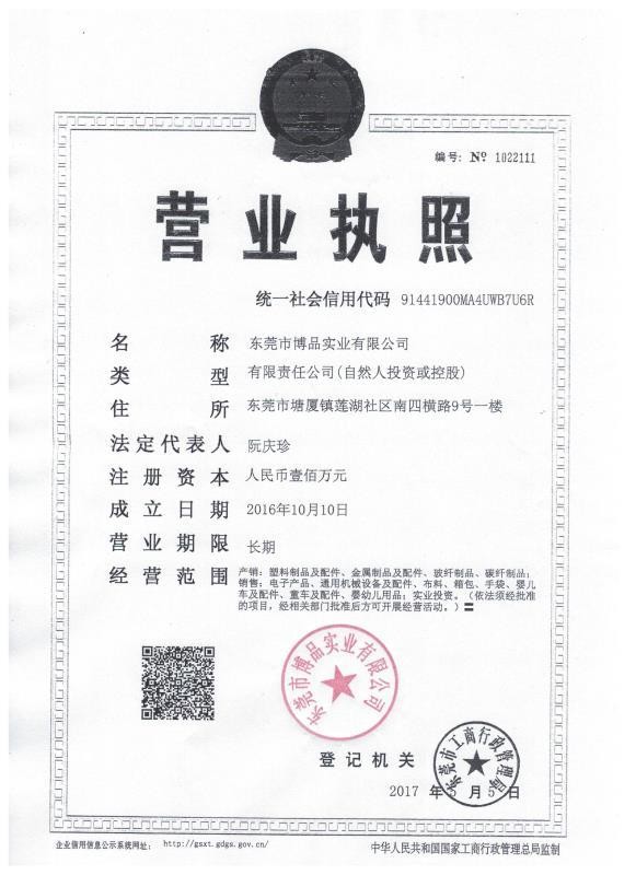 公司名称东莞市博品实业有限公司注册号91441900MA4UWB7U6R