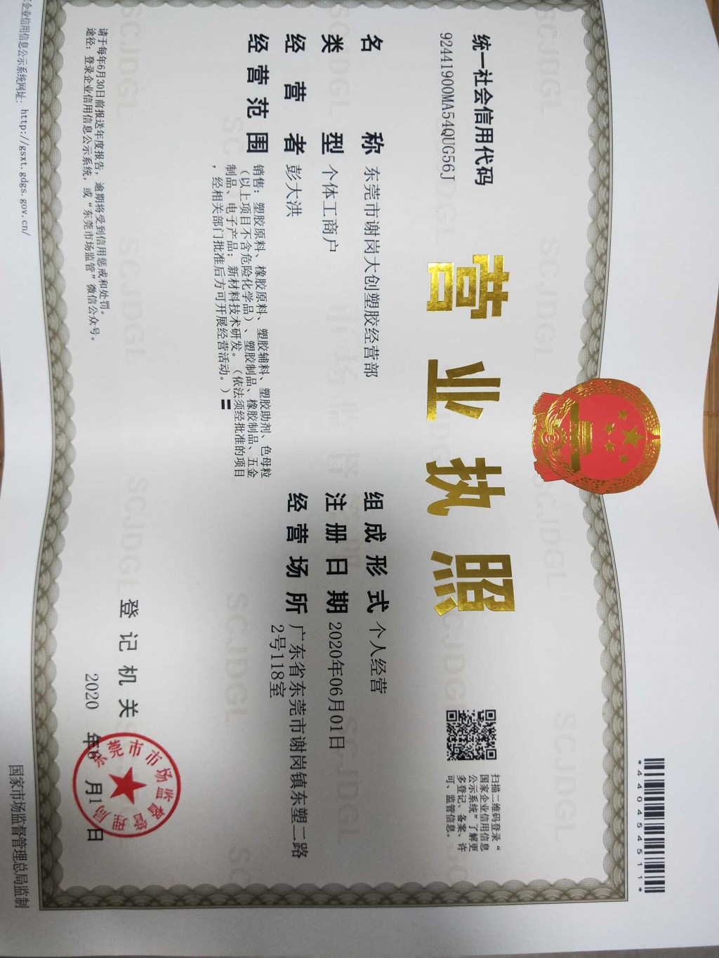 东莞市谢岗大创塑胶经营部