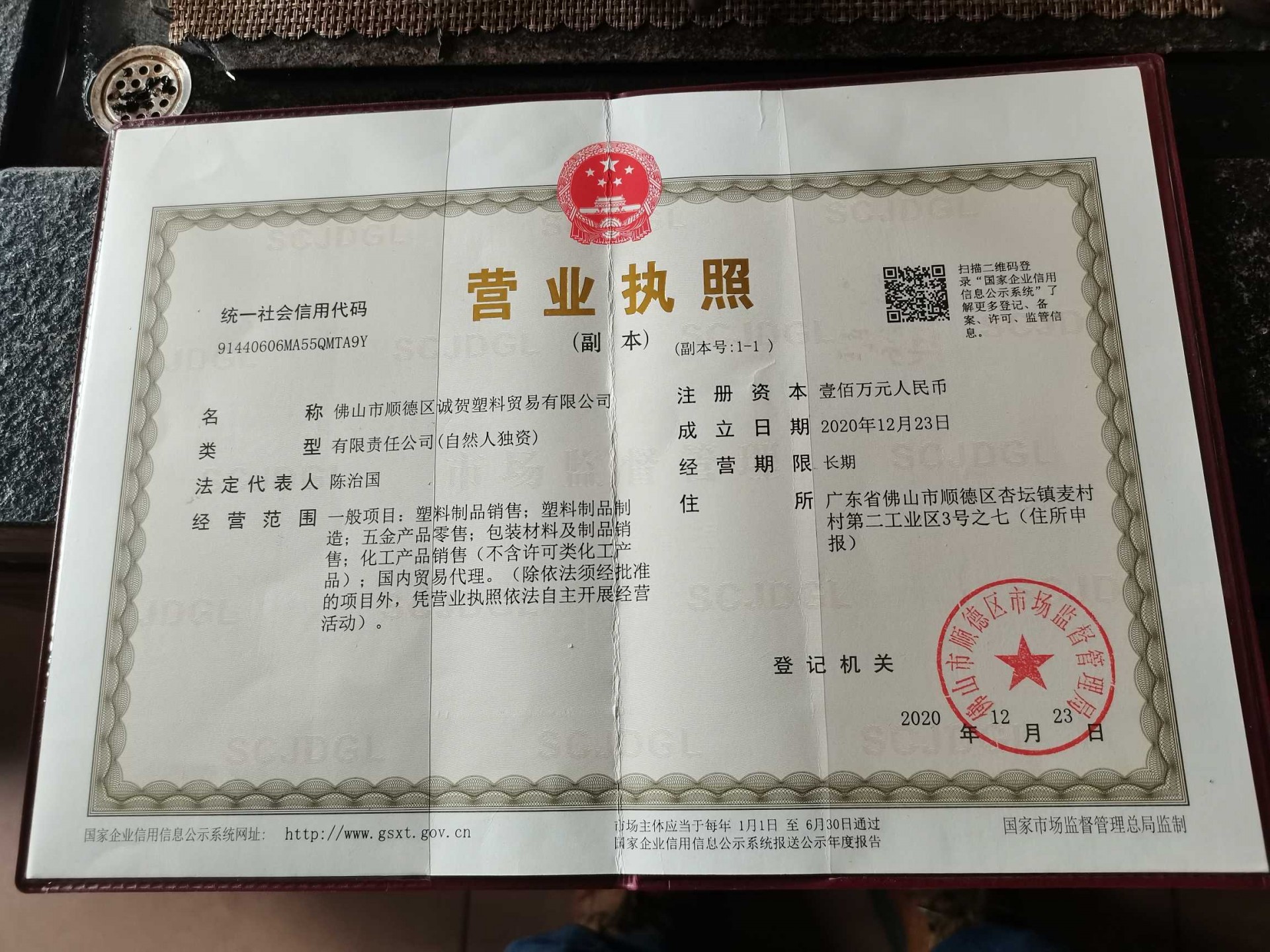 公司名称佛山市顺德区诚贺塑料贸易有限公司注册号91440606MA55QMTA9Y