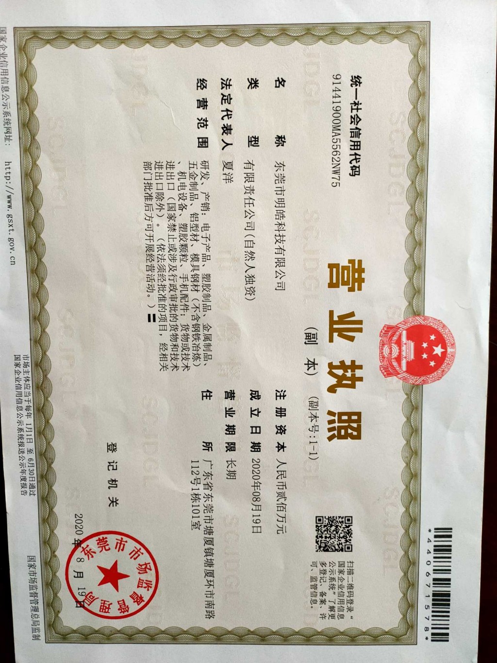 广东省东莞市塘厦镇塘厦环市南路112号1栋101室