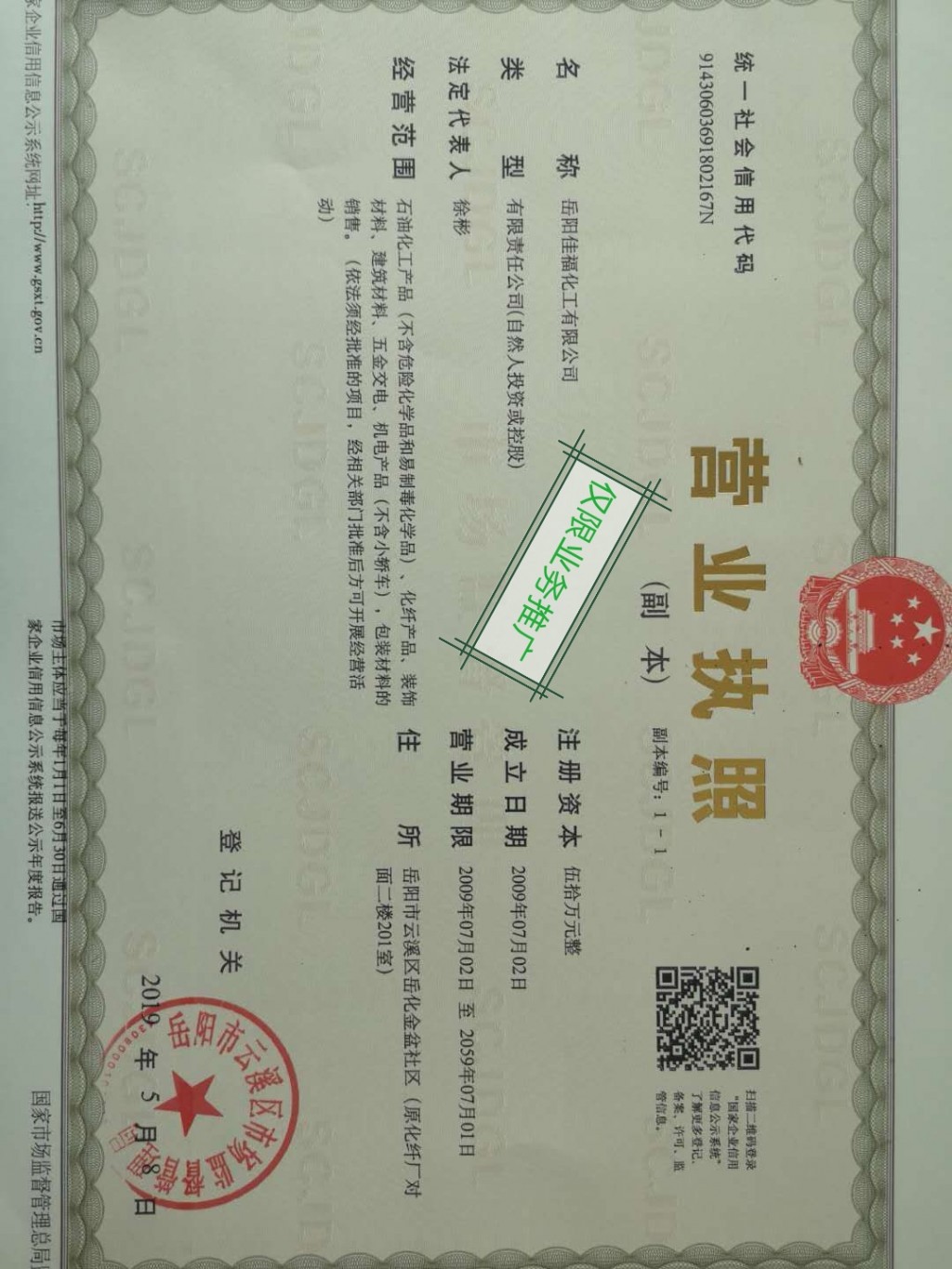 公司名称岳阳佳福化工有限公司注册号91430603691802167N