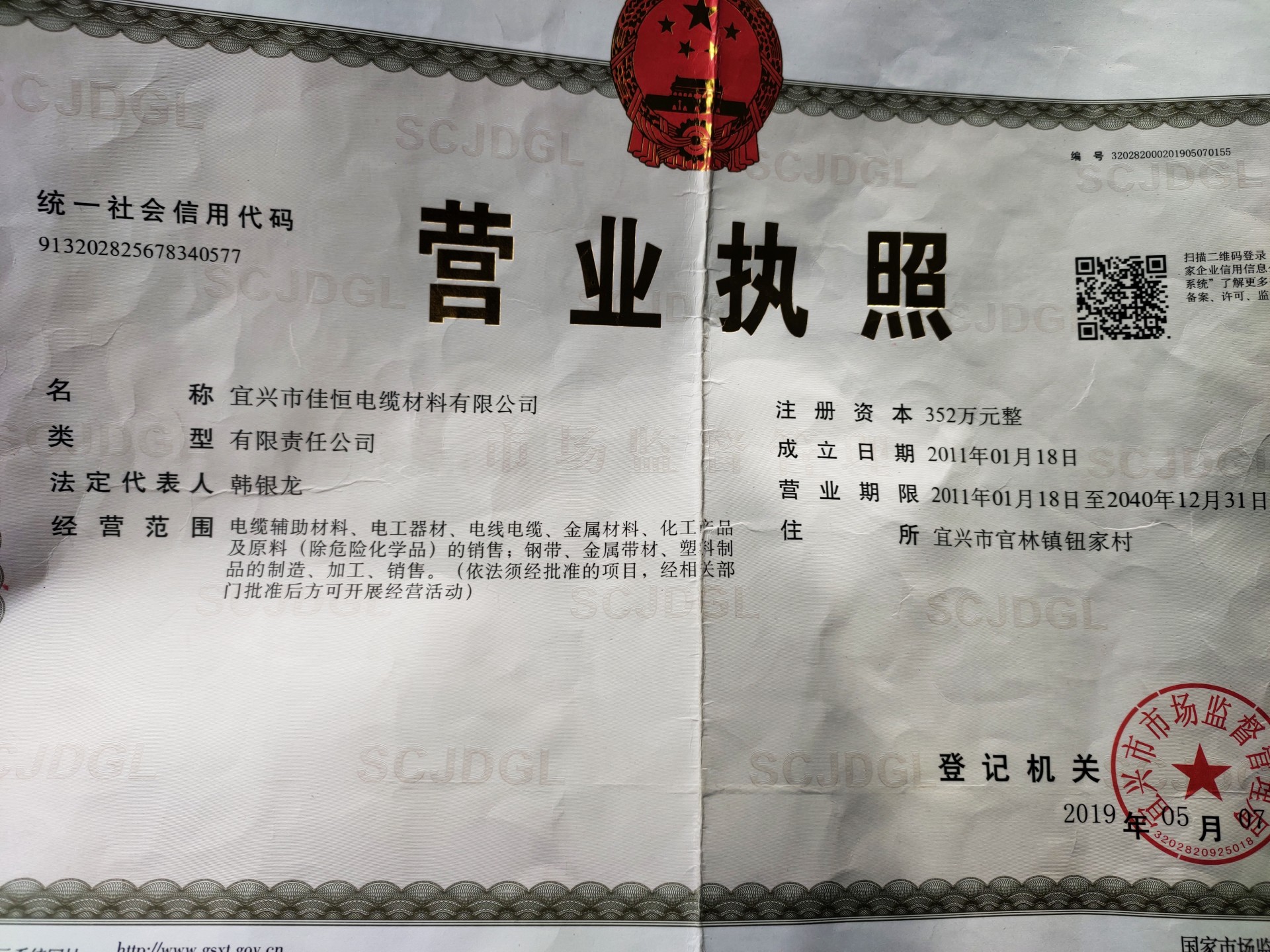 公司名称宜兴市佳恒电缆材料有限公司注册号913202825678340577