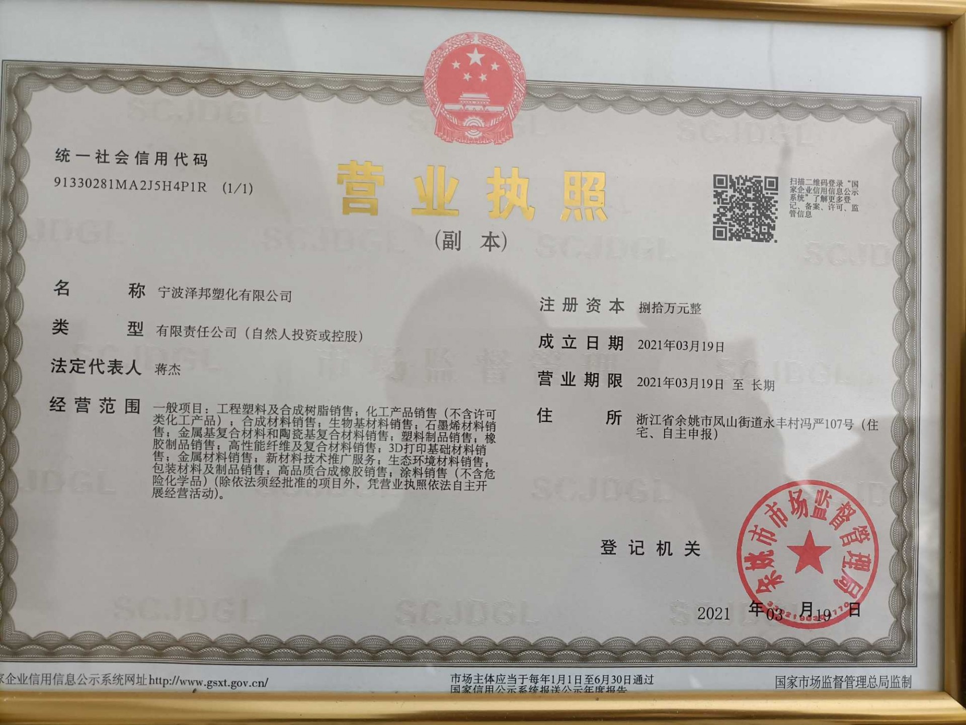 公司名称宁波泽邦塑化有限公司注册号91330281MA2J5H4P1R