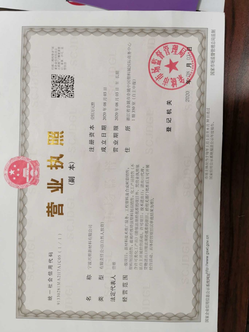 浙江省余姚市余姚中国塑料城国际商务中心1幢350室(自主申报)