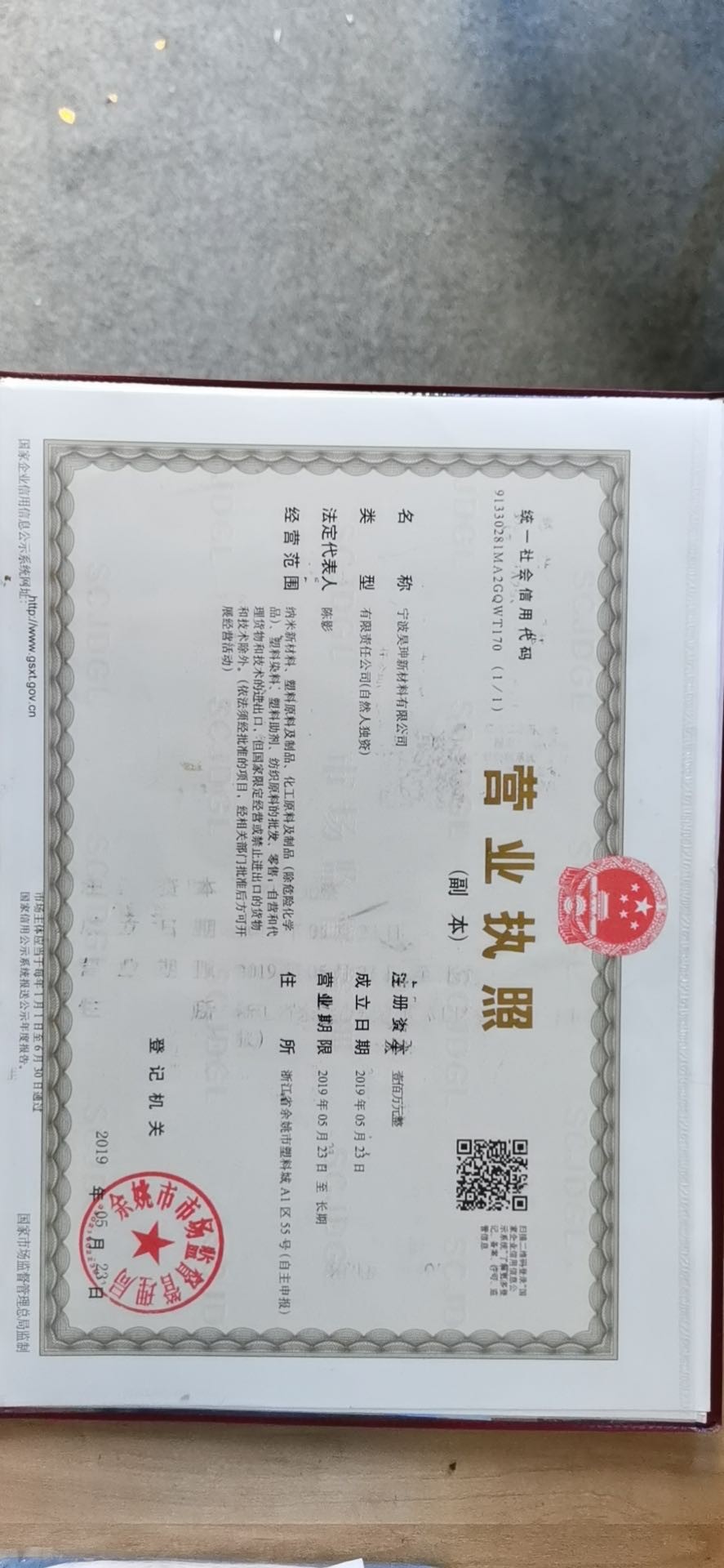 浙江省余姚市塑料城A1区55号(自主申报)