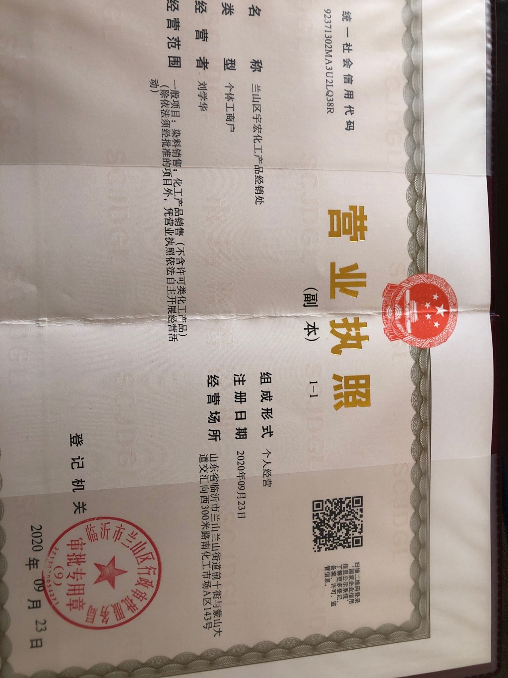 兰山区宇宏化工产品经销处