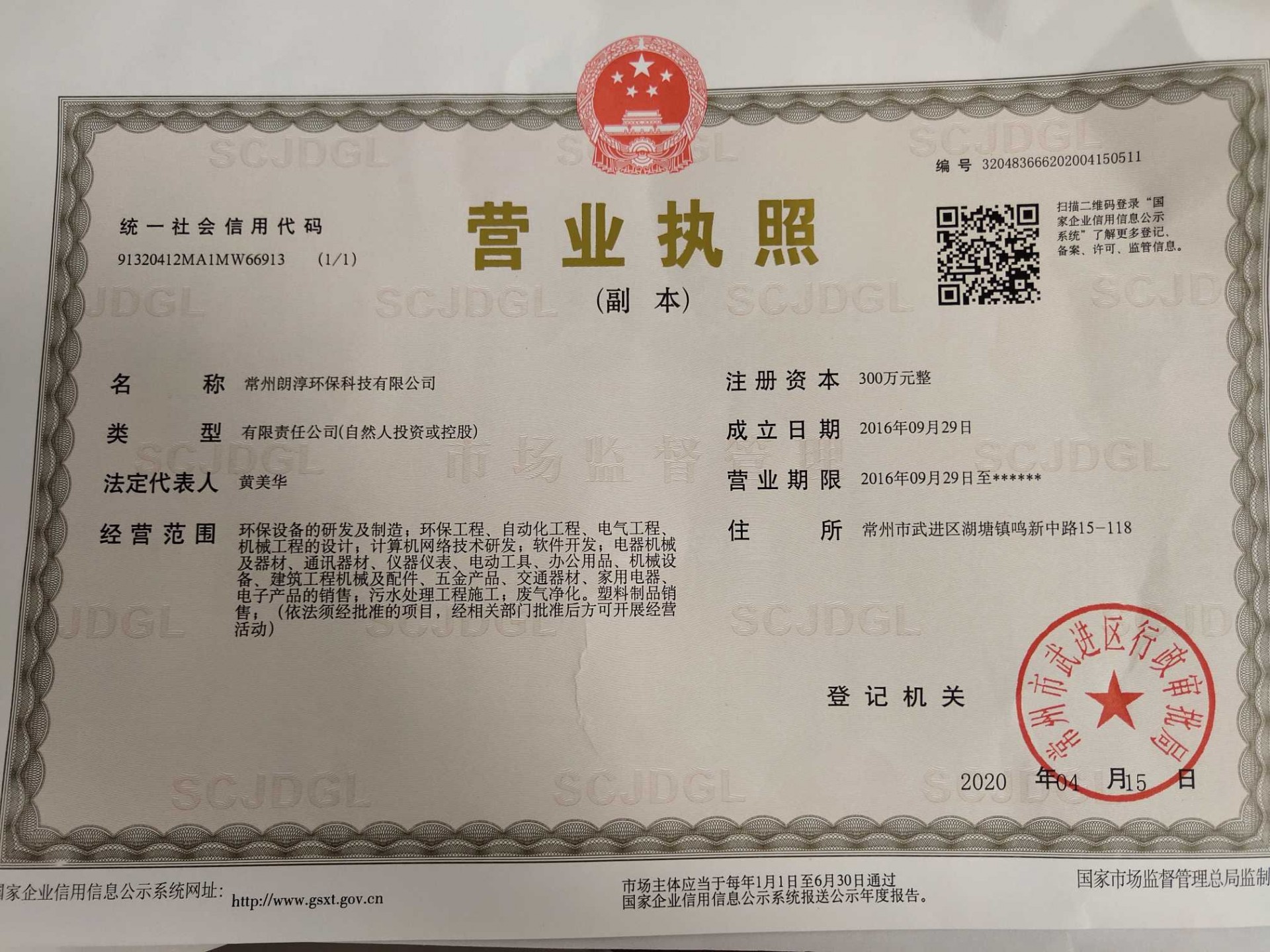 公司名称常州朗淳环保科技有限公司注册号91320412MA1MW66913