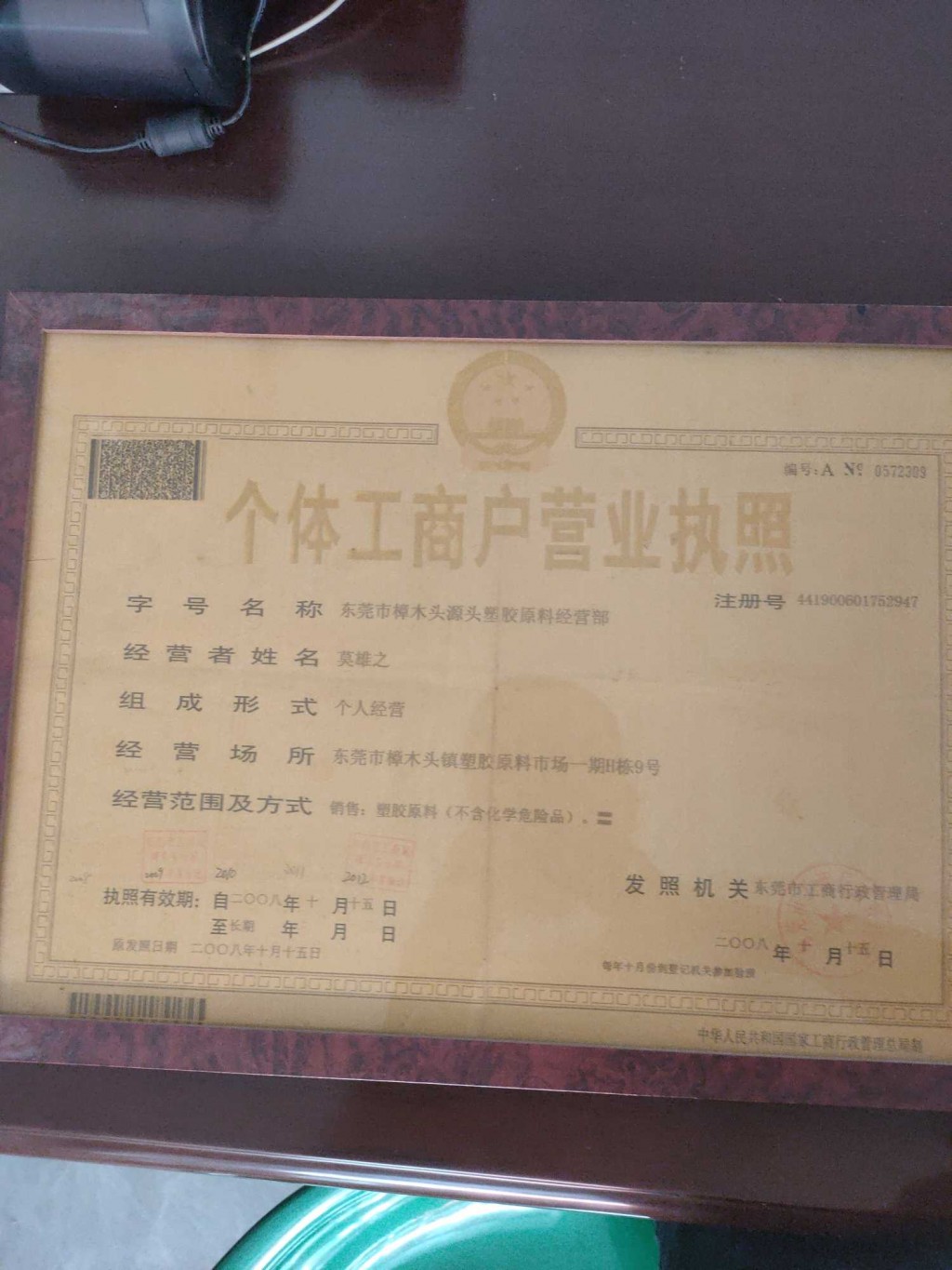 东莞市樟木头镇塑胶原料市场一期H栋9号