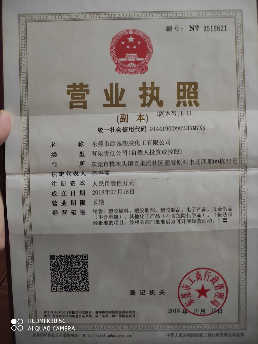 东莞市樟木头镇百果洞社区塑胶原料市场四期09栋22号