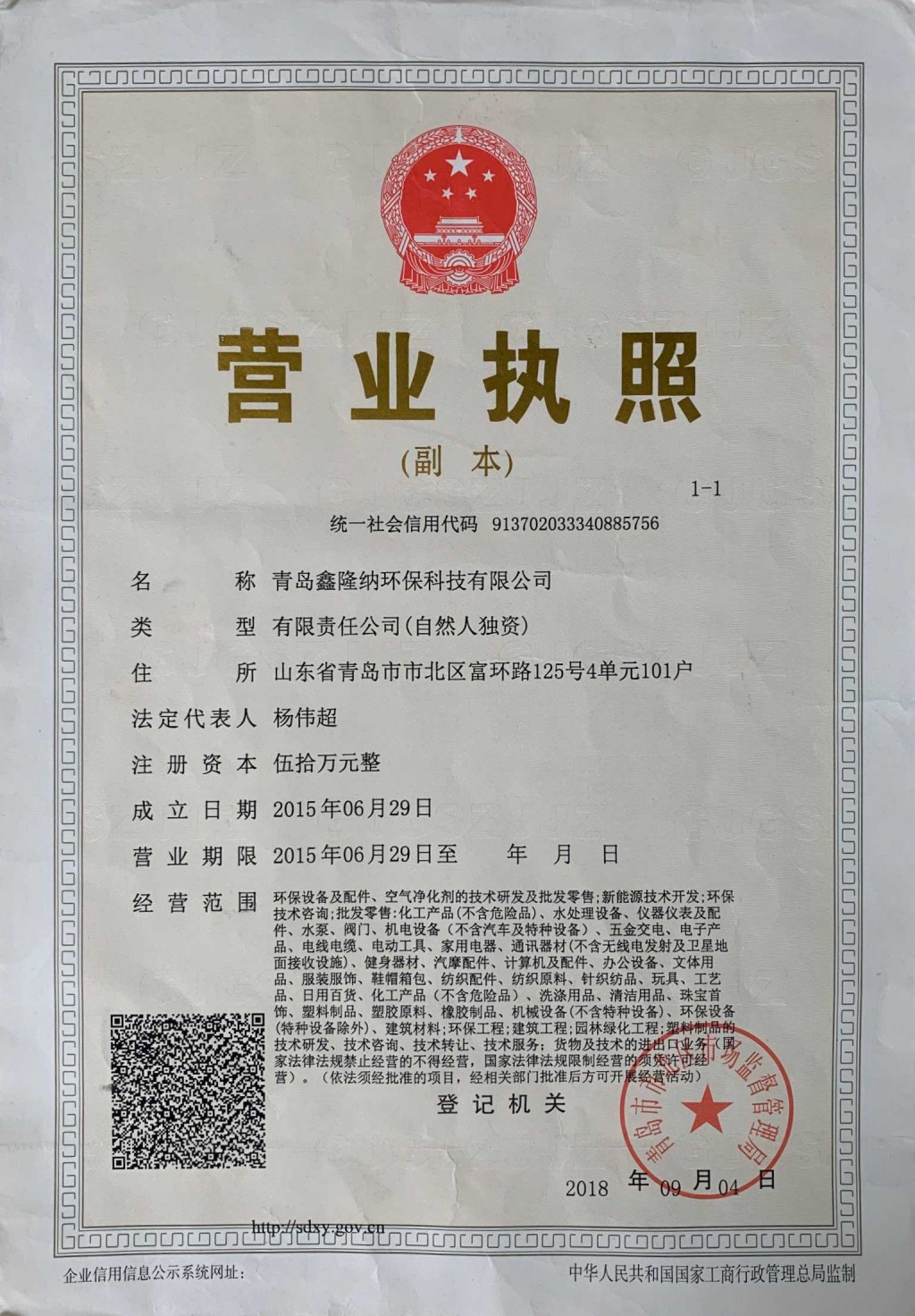 青岛鑫隆纳环保科技有限公司