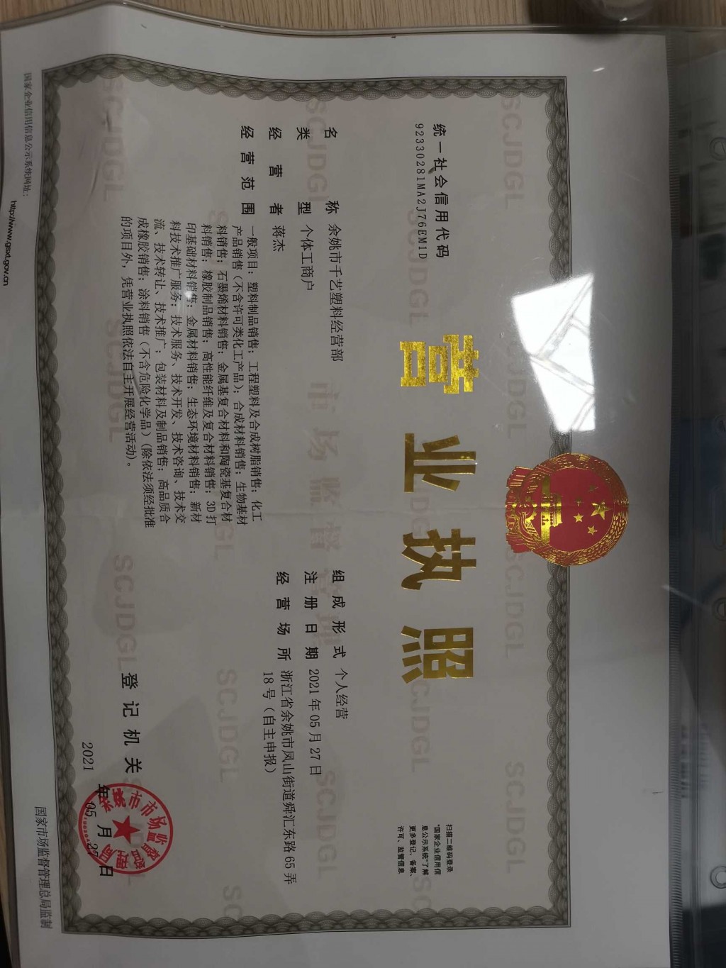 浙江省余姚市凤山街道舜汇东路65弄18号(自主申报)